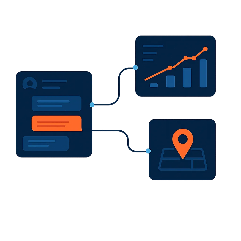 Unificá WhatsApp, Instagram, Facebook, email, SMS y webchat en una sola bandeja conectada al CRM, con etapas, notas y asignación de tareas.